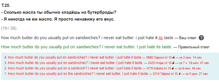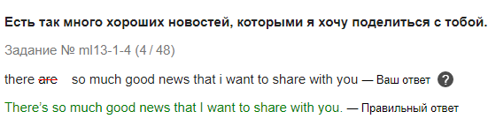 <span style=«color: rgb(20, 20, 20); font-family: Georgia, „Times New Roman“, Times, serif; font-size: 15.6px; background-color: rgb(252, 252, 255);»>Радует что сложные темы плавно перетекают из урока в урок… Так тема 12 урока до сих пор заставляет меня тормозить перед тем как составить предложение, очень часто забываю и вставляю much в утвердительном предложении, как например здесь:<br style=«color: rgb(20, 20, 20); font-family: Georgia, „Times New Roman“, Times, serif; font-size: 15.6px; background-color: rgb(252, 252, 255);» /><br style=«color: rgb(20, 20, 20); font-family: Georgia, „Times New Roman“, Times, serif; font-size: 15.6px; background-color: rgb(252, 252, 255);» /><img src=«dragon-english.ru/forum/attachments/512/» alt=«2017-09-28_21-31-57.png» class=«bbCodeImage LbImage» style=«border: 0px; max-width: 100%; color: rgb(20, 20, 20); font-family: Georgia, „Times New Roman“, Times, serif; font-size: 15.6px; background-color: rgb(252, 252, 255);» /><span style=«color: rgb(20, 20, 20); font-family: Georgia, „Times New Roman“, Times, serif; font-size: 15.6px; background-color: rgb(252, 252, 255);»> <br style=«color: rgb(20, 20, 20); font-family: Georgia, „Times New Roman“, Times, serif; font-size: 15.6px; background-color: rgb(252, 252, 255);» /><span style=«color: rgb(20, 20, 20); font-family: Georgia, „Times New Roman“, Times, serif; font-size: 15.6px; background-color: rgb(252, 252, 255);»>Ну и еще конечно много делаю ошибок либо из-за невнимательности или просто неправильного написания слов (стараюсь их писать по памяти):<br style=«color: rgb(20, 20, 20); font-family: Georgia, „Times New Roman“, Times, serif; font-size: 15.6px; background-color: rgb(252, 252, 255);» /><br style=«color: rgb(20, 20, 20); font-family: Georgia, „Times New Roman“, Times, serif; font-size: 15.6px; background-color: rgb(252, 252, 255);» /><img src=«dragon-english.ru/forum/attachments/513/» alt=«2017-09-28_21-31-09.png» class=«bbCodeImage LbImage» style=«border: 0px; max-width: 100%; color: rgb(20, 20, 20); font-family: Georgia, „Times New Roman“, Times, serif; font-size: 15.6px; background-color: rgb(252, 252, 255);» /><span style=«color: rgb(20, 20, 20); font-family: Georgia, „Times New Roman“, Times, serif; font-size: 15.6px; background-color: rgb(252, 252, 255);»> <br style=«color: rgb(20, 20, 20); font-family: Georgia, „Times New Roman“, Times, serif; font-size: 15.6px; background-color: rgb(252, 252, 255);» /><br style=«color: rgb(20, 20, 20); font-family: Georgia, „Times New Roman“, Times, serif; font-size: 15.6px; background-color: rgb(252, 252, 255);» /><img src=«dragon-english.ru/forum/attachments/514/» alt=«2017-09-28_21-52-24.png» class=«bbCodeImage LbImage» style=«border: 0px; max-width: 100%; color: rgb(20, 20, 20); font-family: Georgia, „Times New Roman“, Times, serif; font-size: 15.6px; background-color: rgb(252, 252, 255);» /><span style=«color: rgb(20, 20, 20); font-family: Georgia, „Times New Roman“, Times, serif; font-size: 15.6px; background-color: rgb(252, 252, 255);»> <br style=«color: rgb(20, 20, 20); font-family: Georgia, „Times New Roman“, Times, serif; font-size: 15.6px; background-color: rgb(252, 252, 255);» /><br style=«color: rgb(20, 20, 20); font-family: Georgia, „Times New Roman“, Times, serif; font-size: 15.6px; background-color: rgb(252, 252, 255);» /><span style=«color: rgb(20, 20, 20); font-family: Georgia, „Times New Roman“, Times, serif; font-size: 15.6px; background-color: rgb(252, 252, 255);»>С новостями в очередной раз возникает сложность, ну никак не получается запомнить что они в единственном числе:<br style=«color: rgb(20, 20, 20); font-family: Georgia, „Times New Roman“, Times, serif; font-size: 15.6px; background-color: rgb(252, 252, 255);» /><img src=«dragon-english.ru/forum/attachments/515/» alt=«2017-09-21_15-42-22.png» class=«bbCodeImage LbImage» style=«border: 0px; max-width: 100%; color: rgb(20, 20, 20); font-family: Georgia, „Times New Roman“, Times, serif; font-size: 15.6px; background-color: rgb(252, 252, 255);» /><span style=«color: rgb(20, 20, 20); font-family: Georgia, „Times New Roman“, Times, serif; font-size: 15.6px; background-color: rgb(252, 252, 255);»> <br style=«color: rgb(20, 20, 20); font-family: Georgia, „Times New Roman“, Times, serif; font-size: 15.6px; background-color: rgb(252, 252, 255);» /><span style=«color: rgb(20, 20, 20); font-family: Georgia, „Times New Roman“, Times, serif; font-size: 15.6px; background-color: rgb(252, 252, 255);»>А в остальном даже есть чему порадоваться, материал вполне усваивается и задания не вызывают особых сложностей, чего не скажешь о живом общении((( вот тут я теряюсь и никак не могу собрать пазл в голове, в итоге стою и хлопаю глазами, как будто вообще ничего не знаю((