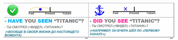 4. Интересное дополнение к теме разницы между 1-м и 3-м аспектами в прошедшем времени. Оказывается, не всегда, когда кажется, что есть результат, нужно «лепить» 3-й аспект, поскольку порой из контекста неясно, на чем автор делает акцент – на факте или результате. В таком случае, лучше употреблять 1-й аспект, как, кстати, и делают англоязычные люди, особенно в разговорной речи.